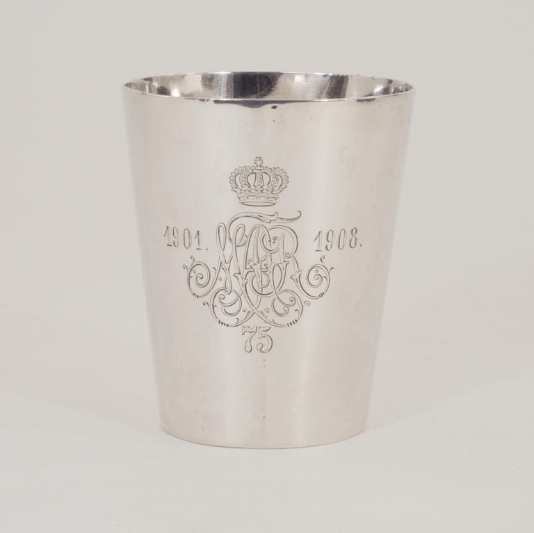 Ein Regimentsbecher in 800er Silber mit einem Mansfelder Thaler von 1542. - VERKAUFT