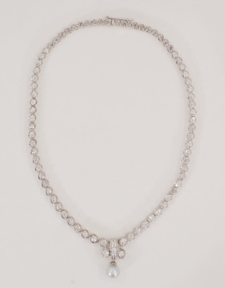 Ein impressives Riviérencollier mit Diamanten und einer Orientperle - um 1880 - VERKAUFT