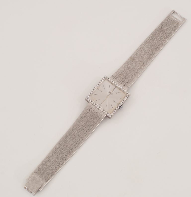 Eine 18 Karat Weißgold Piaget Herren Armbanduhr mit 48 Brillanten und quadratischem Ziffernblatt - VERKAUFT
