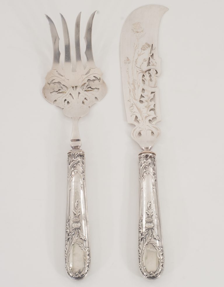 Ein exquisites Jugendstil Fischbesteck in 950er Silber mit Distel Dekor - VERKAUFT