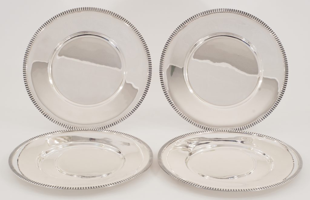 Ein Satz von vier Platztellern gearbeitet in 925er Silber, Wilkens Bremen - VERKAUFT