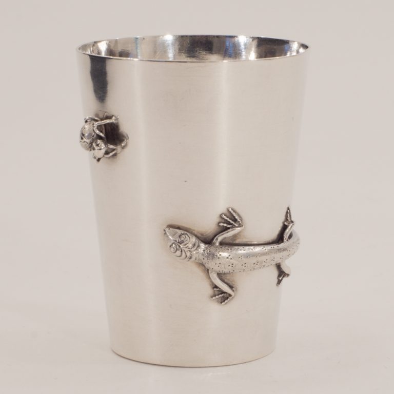 Ein amüsanter Silberbecher mit Eidechse und Spinne - Shanghai um 1900 - VERKAUFT