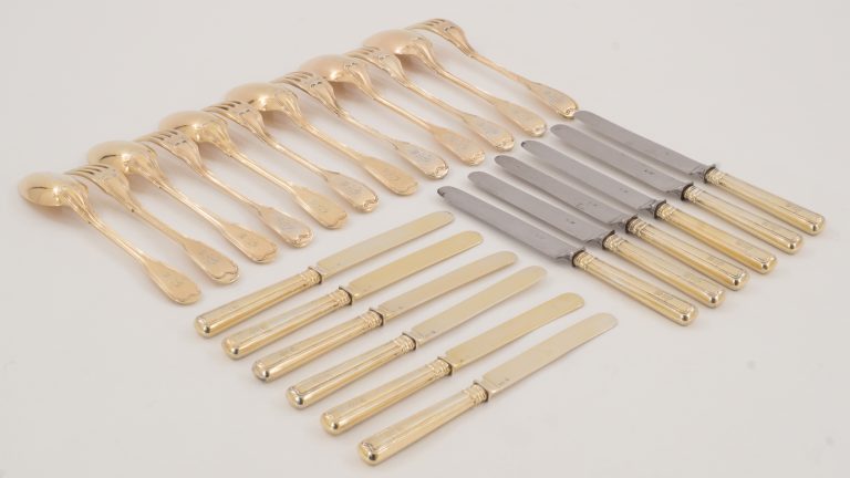 Ein Vermeilbesteck in 13 Lot Silber(812,5/1000) im Dekor "Augsburger Faden", Augsburg und München 1819 - 1863 für sechs Personen - VERKAUFT