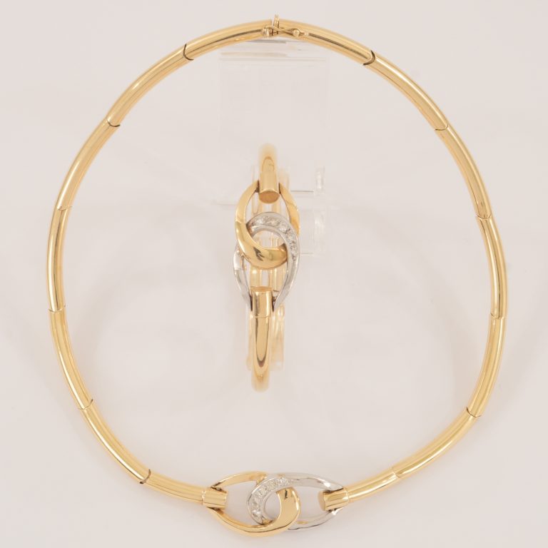 Ein Set in 18 Kt. Weiss- und Gelbgold - bestehend aus einer Gliederkette und einem Armband, ausgefasst mit 10 Brillanten von zus. ca. 0,8 ct. - VERKAUFT