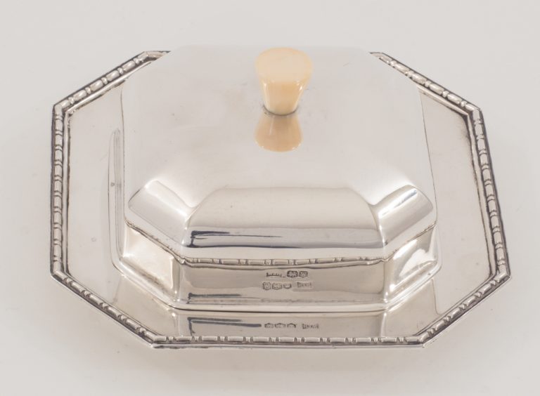 Eine elegante Butterdose in 925er Silber mit Glaseinsatz, Sheffield 1939 - VERKAUFT