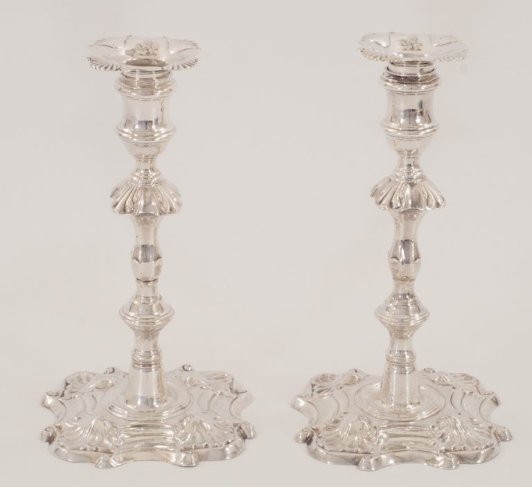 Ein Paar seltene englische George II. Kerzenhalter in 925er Silber, London 1749 - VERKAUFT