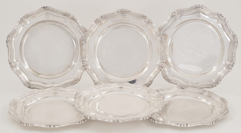 Ein Satz von 6 kaiserlichen Silbertellern aus dem Besitz Kaiser Wilhelm II. - Berlin um 1910 - VERKAUFT