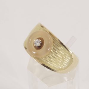 Ein attraktiver Email-Diamantring in 18 Karat Gelbgold mit Email, Achat und einem Brillanten​ - VERKAUFT
