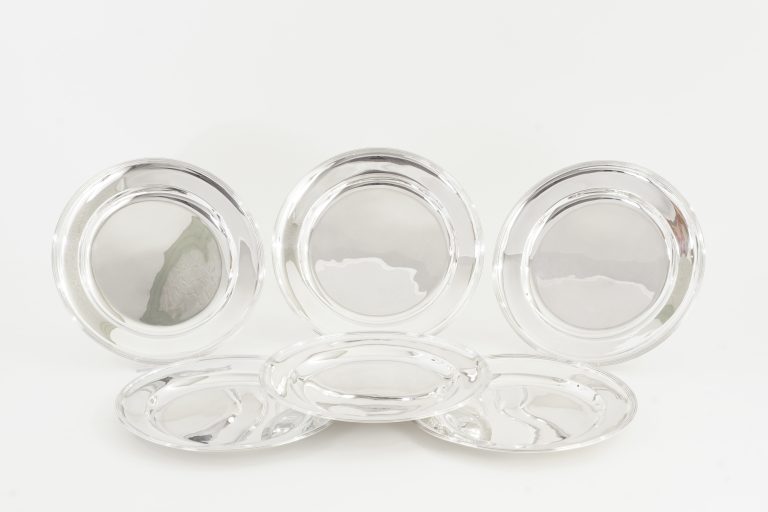 Ein Satz von 6 Platztellern in 800er Silber - glatter hochpolierter Dekor - VERKAUFT