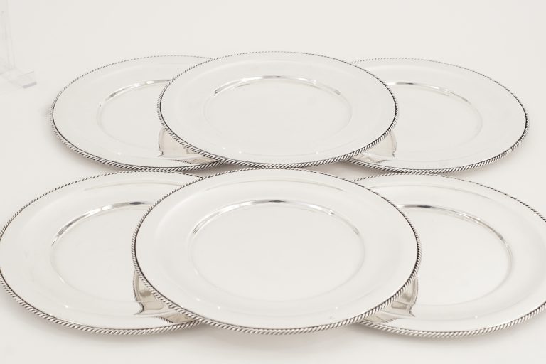 Ein Satz von 6 Platztellern in 925er Silber mit Kordelrand - Deutschland 1. Hälfte 20. Jahrhundert - VERKAUFT