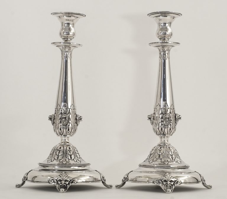 Ein Paar große einflammige Kerzenhalter gearbeitet in Silber - um 1880​ - VERKAUFT