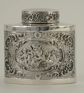 Eine Teedose in 800er Silber - musizierende Putten - Deutschland um 1900 - VERKAUFT