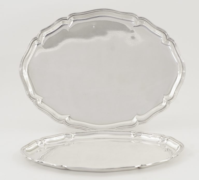 Zwei Silbertabletts in 835 Silber - Chippendale Dekor - Wilkens Bremen - VERKAUFT