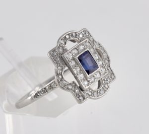 Ein Art déco Ring in Platin mit Saphir und Diamanten wohl deutsch um 1920/25 - VERKAUFT