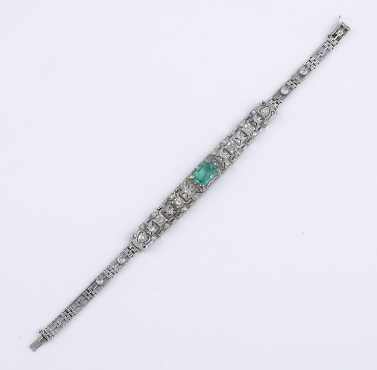 Ein Art déco Armband in Platin und Weißgold mit einem Smaragd von ca. 2 ct. und Diamanten von zus. ca. 1,5 ct. - VERKAUFT