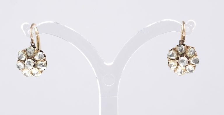 Ein Paar Ohrringe in 18 Karat Gold - Margeritenförmig mit 16 Diamantrosen - VERKAUFT