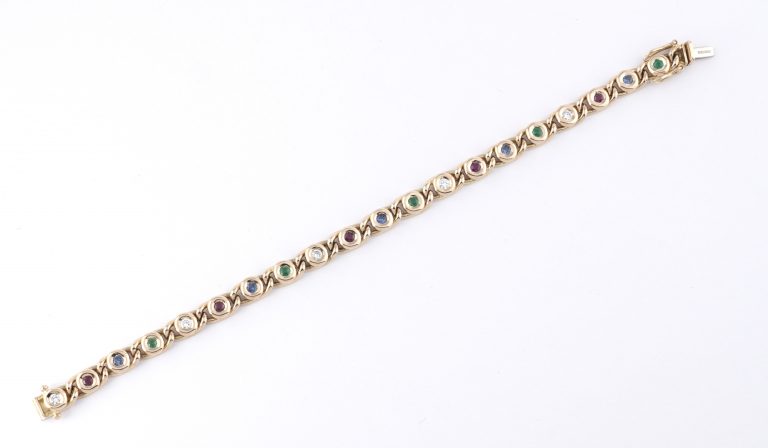 Ein Armband in 18 Karat Roségold mit Saphiren, Rubinen, Smaragden und Brillanten - VERKAUFT