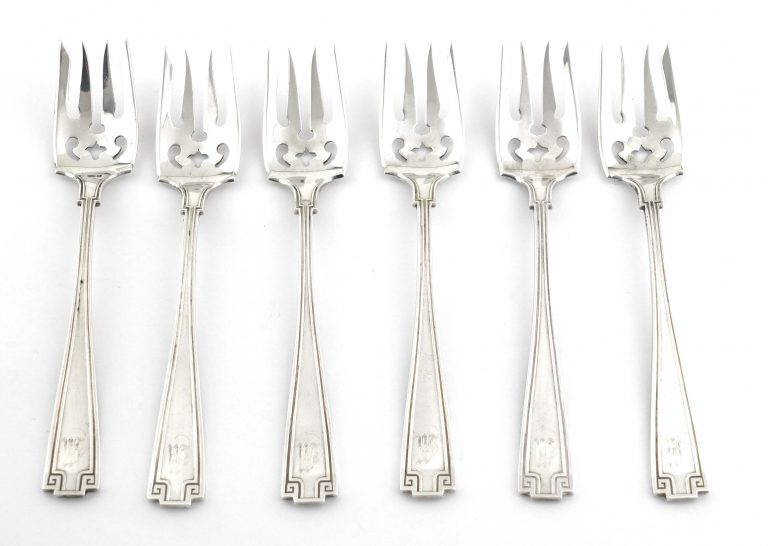 Ein Satz von 6 seltenen Petit Four Gabeln in 925 Sterlingsilber - Modell Etruscan - Gorham USA - VERKAUFT