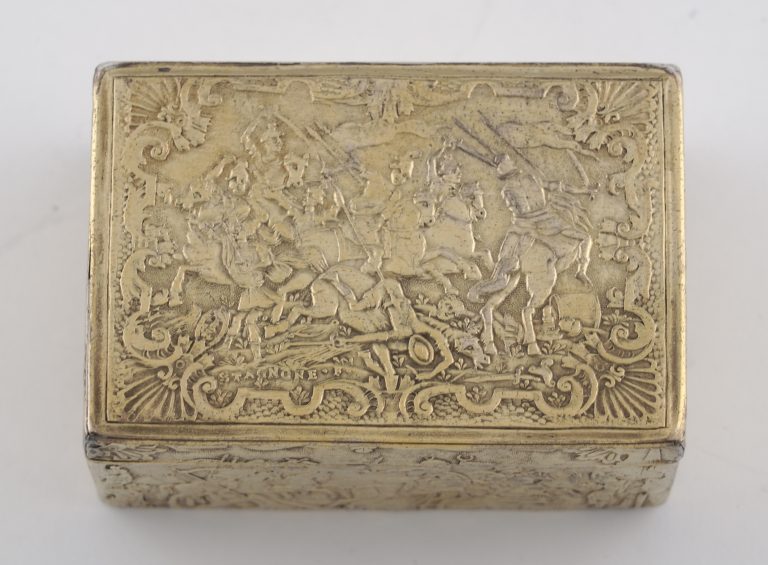 Eine Dose mit Schlachtenszene - gearbeitet in Silbervergoldet - Anfang 18. Jahrhundert - VERKAUFT