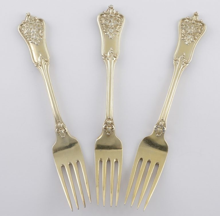 Ein Satz von drei kaiserlichen Dessertgabeln in Silbervergoldet aus dem ehemaligen Besitz Kaiser Wilhelm II. - VERKAUFT