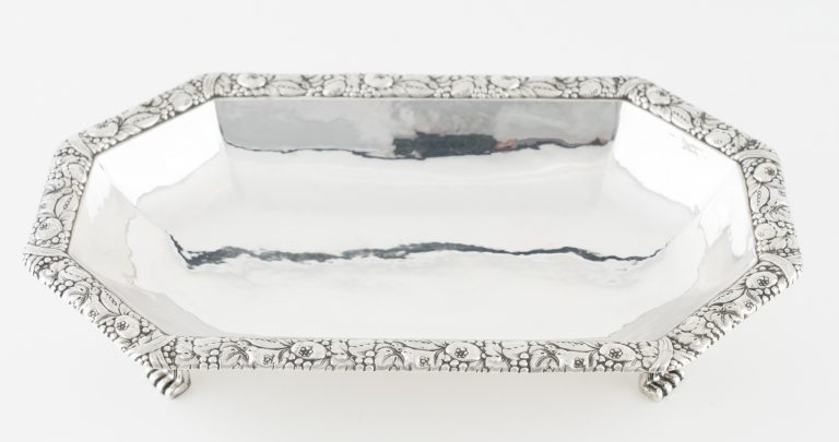 Eine solide oktagonale Schale auf vier Füßen in 800er Silber - Bruckmann Heilbronn - VERKAUFT