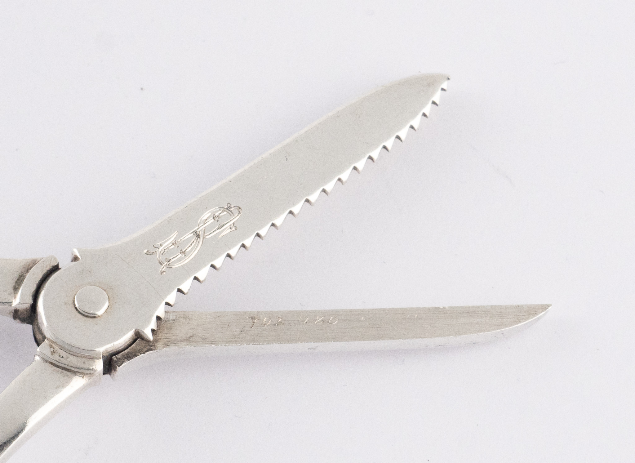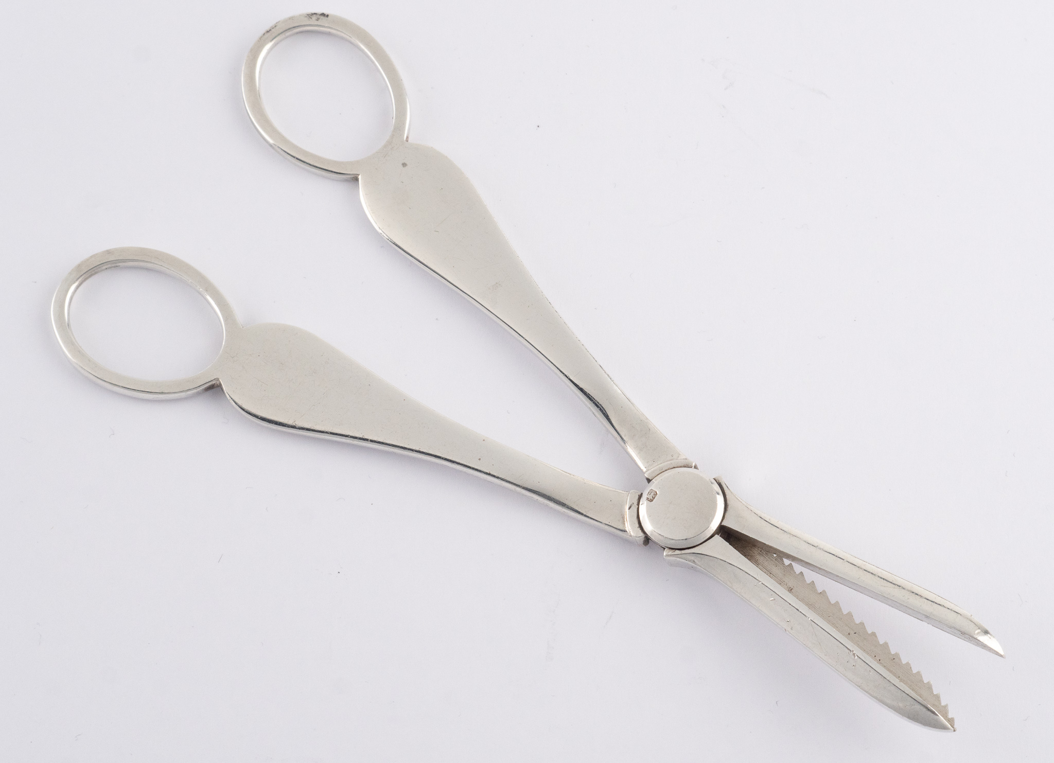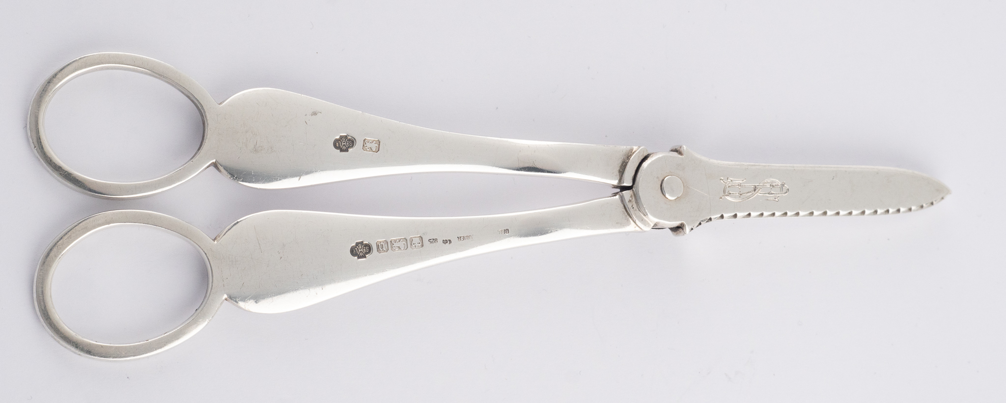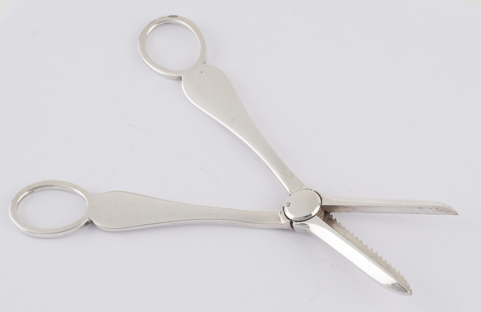 Eine solide Viktorianische Traubenschere gearbeitet in 925 Sterlingsilber. Glatter hochpolierter Dekor. Zeitgenössisches Monogramm