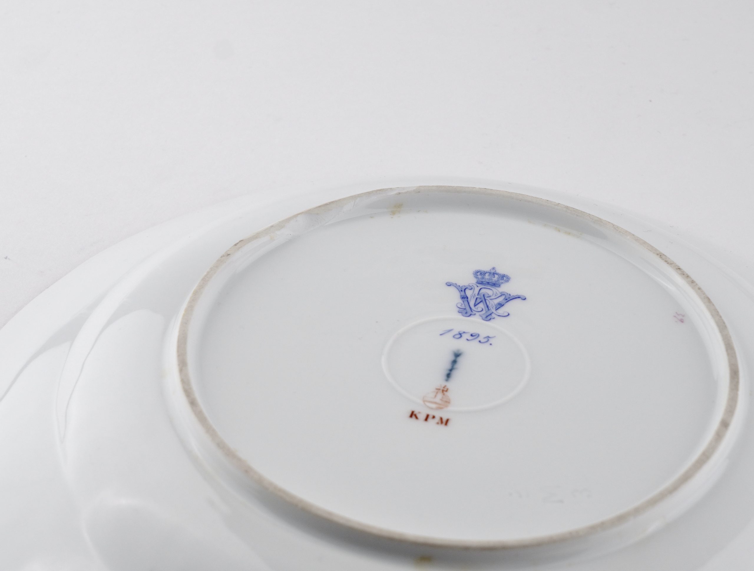 Rückseitig mit Besitzermonogramm WR für Wilhelm Rex Zepter, Reichsapfel und Malermarke.